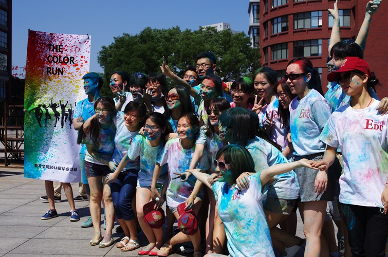 The Color Run活动时下火爆异常,已在全国多个城市开展,而校园里引入该活动在全国高校尚属少数。本次活动共设绿、蓝、黄、红四大彩色站,分别命名为“绿色活力,蓝色畅想,流金岁月,万紫千红”,参赛人员经过彩色站时由工作人员喷洒上相应的彩色粉末;彩色站之间穿插三个加油站,分别命名为“难舍同窗、教你难忘、守望明德”,或开展游戏互动或合影留念。