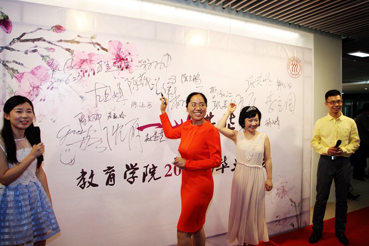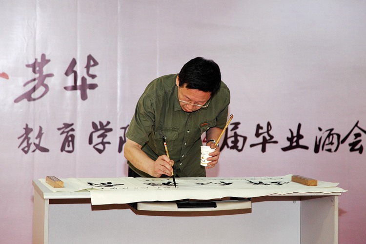 而接下来的环节更是精彩纷呈,既有硕士一年级同学的美妙歌声,也有毕业生的曼妙舞蹈。程方平教授挥毫泼墨,为毕业生题字“前程似锦”,代表学院祝各位毕业生在今后的人生道路上有所作为、鹏程万里。秦惠民教授一展歌喉,即兴演唱歌曲《我和你》,深情款款地表达了与毕业生们的浓厚感情。