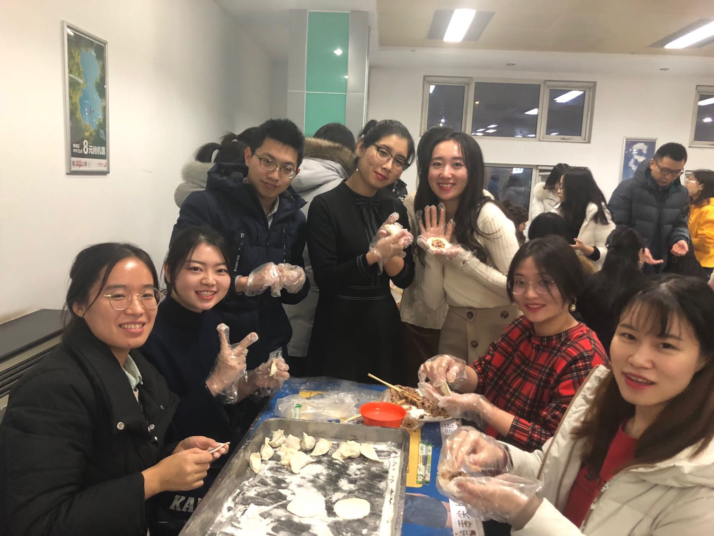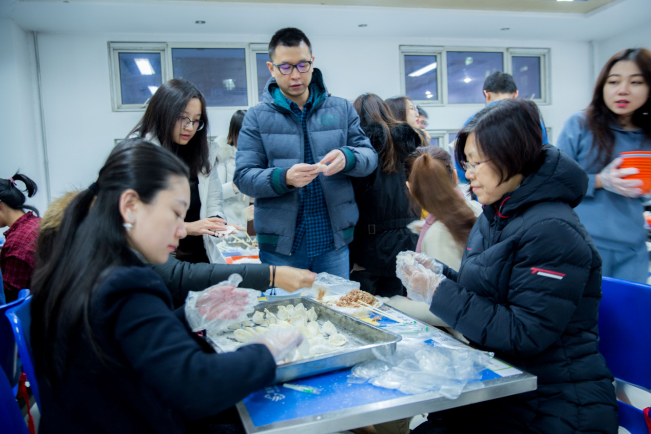 师生齐聚北区食堂,一起包饺子,吃饺子,共同迎接即将到来的新年。