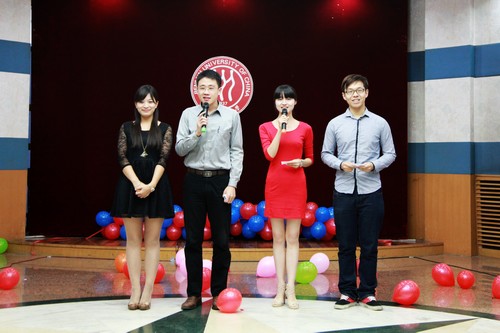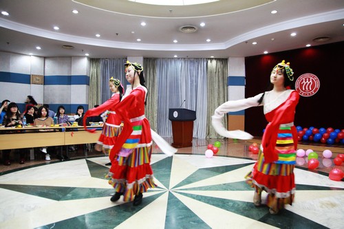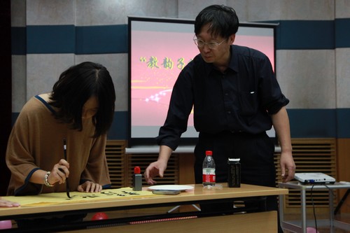 活动现场布置温馨,气氛活跃,精彩的节目轮番上演。男女生独唱、师生对唱、小合唱、独舞、群舞、书法表演、三句半,整台晚会形式多样,异彩纷呈。尤其值得一提的是,我院众多老师也参加了晚会的演出,程方平老师、陈立鹏老师的歌声赢得了大家的热烈掌声,增进了师生间的情谊。