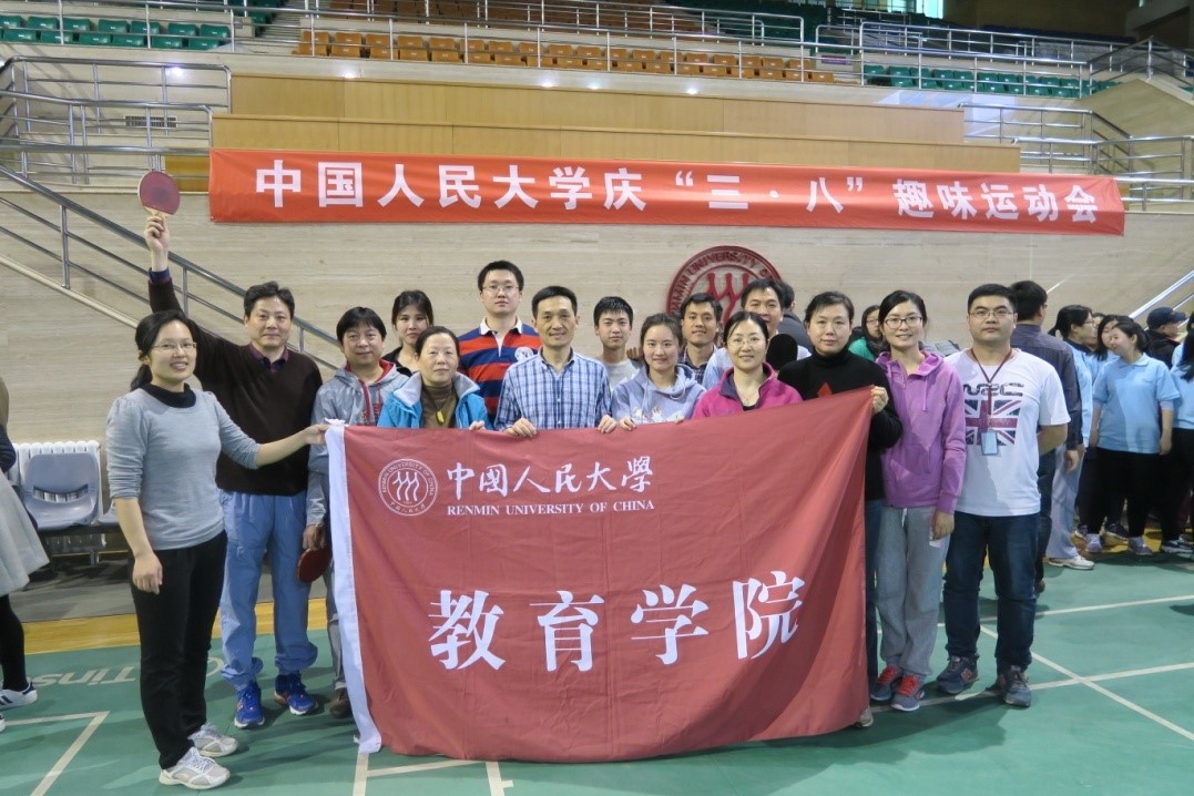 庆祝“三•八”国际妇女节教职工趣味运动会。我院代表队参加了乒乓球接力、呼啦圈接力、2分钟集体踢毽、3分钟8字集体跳大绳等全部项目的比赛,秦惠民院长、张茹书记、周光礼副院长等学院领导带头参加了比赛项目。