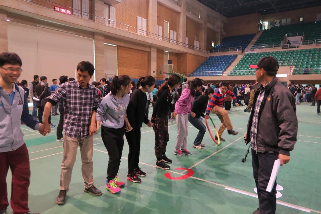 图为呼啦圈接力赛准备中