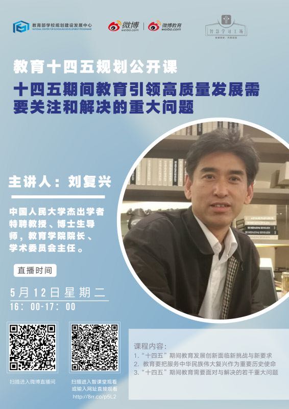 讲座信息:教育十四五规划公开课——十四五期间教育引领高质量发展需要关注和解决的重大问题