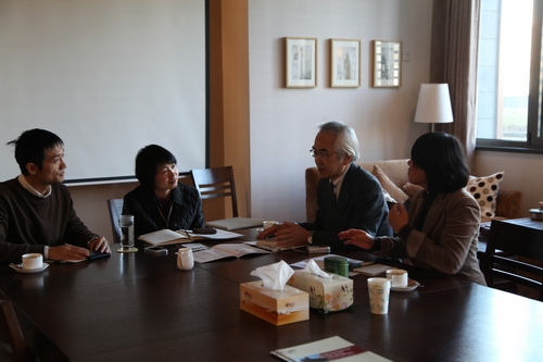 会议室接见了来访的日本北海道大学(Kokkaido University)教育学研究生院河口明人(Kawaguchi Akito)教授和国际交流项目负责人北村嘉惠(Kitamura Kae)主任。