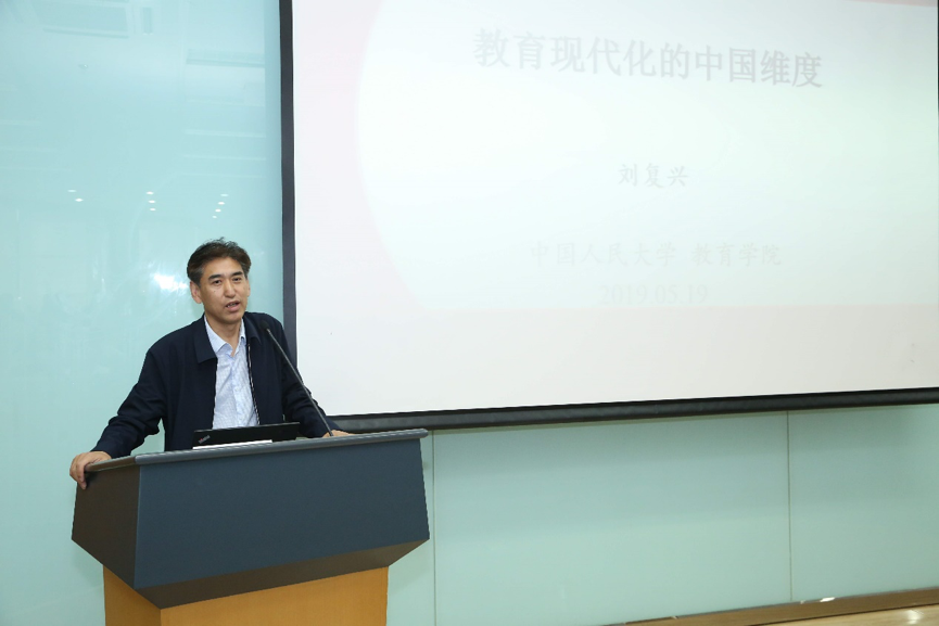 刘复兴教授以“教育现代化的中国维度”为题做主旨演讲。他提出新时代推进教育现代化需要建立新的参照系,需要中国特色维度,而教育现代化的核心是建立现代化的教育体系。刘教授从信息化、智能化、创新发展与新全球化等维度诠释了世界形势与我国教育现代化的关系,同时通过“双一流建设的创新人才培养体系”等案例提出新时期应将文化建设作为培养现代化人才的必要条件。