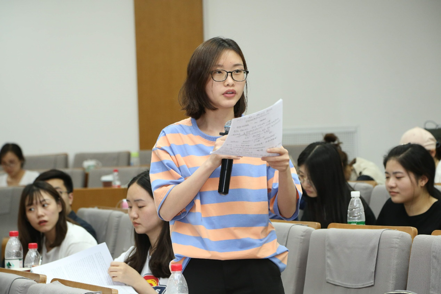 胡莉芳教授、高杭老师分别从研究价值、研究策略与方法以及未来的研究方向等方面给出独到点评,并先后就“‘水课’的概念界定”、“网络家庭作业的异质性”、“何为农村教育对贫困者脱贫的关键影响机制”、“研究理论与研究材料的搭配取舍”等具体问题为汇报者完善论文写作、提升创新能力提供了宝贵建议。论文汇报结束后,现场同学积极向汇报人提问,学术思想的火花不断碰撞,会场气氛相当热烈。