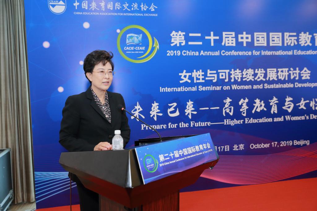 “高等教育与女性发展”专题研讨会随后开始。来自全国各地近百位专家和学生共聚一堂,围绕教育、女性与可持续发展的有关问题展开研讨。中国教育国际交流协会副会长、原中国驻联合国教科文组织大使张秀琴女士担任主持。