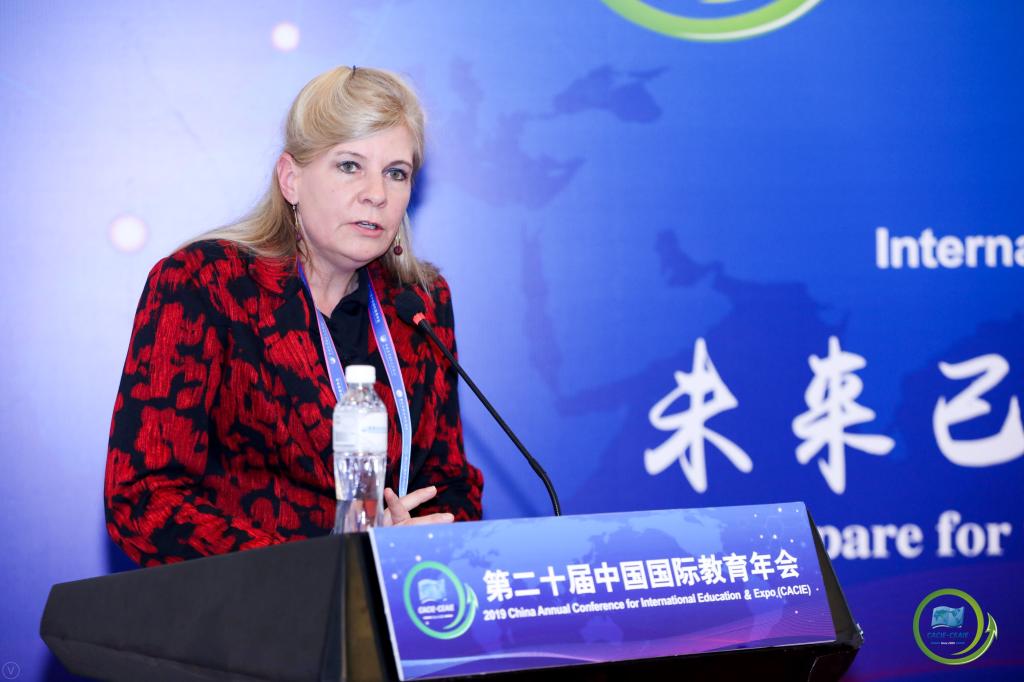 美国州立大学与学院协会主席Mildred García的发言主题为《美国高等教育与女性领导力》。她从统计学的角度探讨了女性从美国高等院校学习后过渡为职业生涯中的领导者的过程,并对女性领导在美国高等教育中所面临的机遇与挑战进行了剖析。