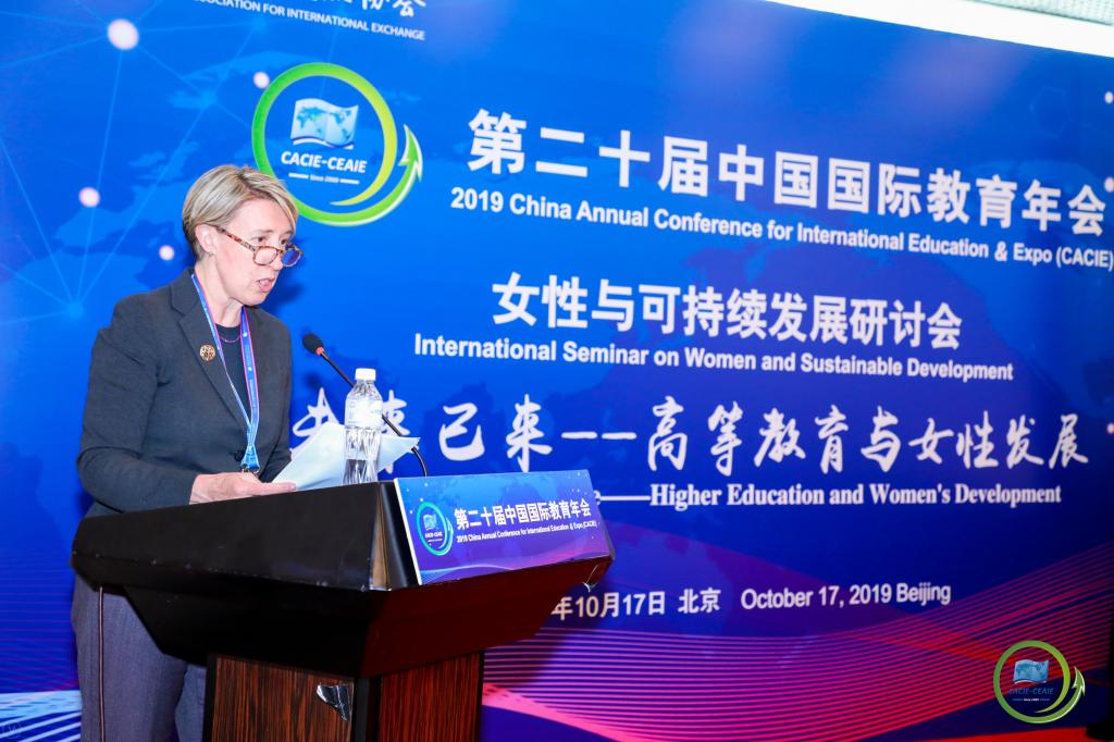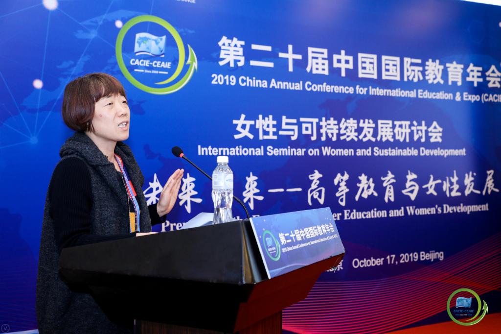 向各位参会来宾对专委会的支持表示衷心的感谢。她提到,2015年9月27日,国家主席习近平出席联合国峰会时与各国领导人一致通过了《改变我们的世界:2030年可持续发展议程》,将“实现性别平等,增强所有妇女和女童的权能”列为17项可持续发展目标之一。中国政府明确将男女平等作为一项基本国策,不断促进性别平等和两性和谐发展。“十三五”规划纲要中也专门提出要不断促进女性全面发展、关爱未成年人健康成长,在国家政治、经济和社会生活各领域保障女性和儿童的权利得以实现,以积极落实2030年可持续发展议程相关目标。她表示,专委会将在稳步推进自身制度化、专业化、规范化、国际化建设的基础上,围绕“教育、女性与可持续发展”议题,认真梳理新中国成立70年以来女性教育的工作经验,厘清面向新的全球发展任务,进一步提升女性教育质量和水平,给出契合新时代中国特色社会主义发展之路的女性教育发展建议,并充分利用中国教育国际交流协会和各位委员所在机构的对外合作平台,开展国际交流与合作。致辞最后,靳诺书记希望各方能够一同携手,实现女性发展的目标并预祝本次研讨会获得圆满成功。
