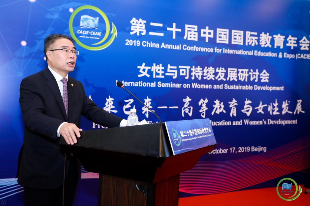 副校长、教育、女性与可持续发展专家委员会专家委员杜鹏主持。他首先向参会的各位领导与来宾表示热烈欢迎。他提到,教育、妇女问题与可持续发展联系在一起是人类社会发展日益走向科学和全面的重要标志。在充满机遇与挑战的时代背景下,提升女性教育质量和水平十分重要。由此,经中国教育国际交流协会第七届理事会讨论通过,决定成立“教育、女性与可持续发展专家委员会”。