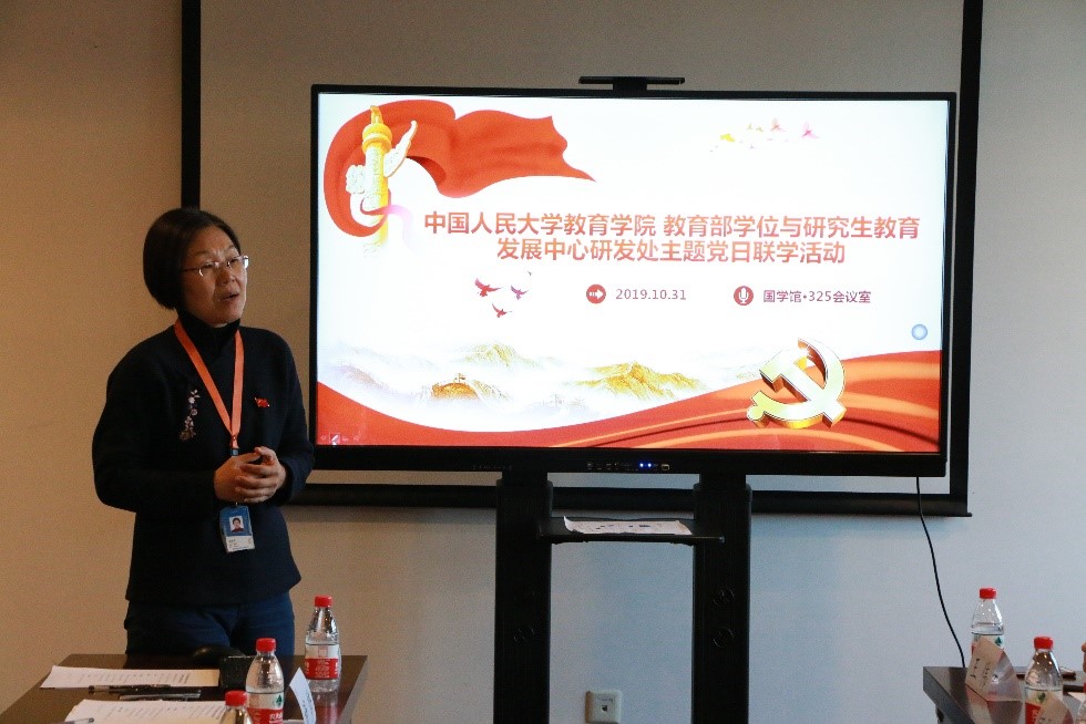 师从李立国教授学习的经历,向各位老师的指导表示感谢。他结合本次党日活动的主题,重点介绍了研发处开展的“研究生教育发展指数”研究工作。