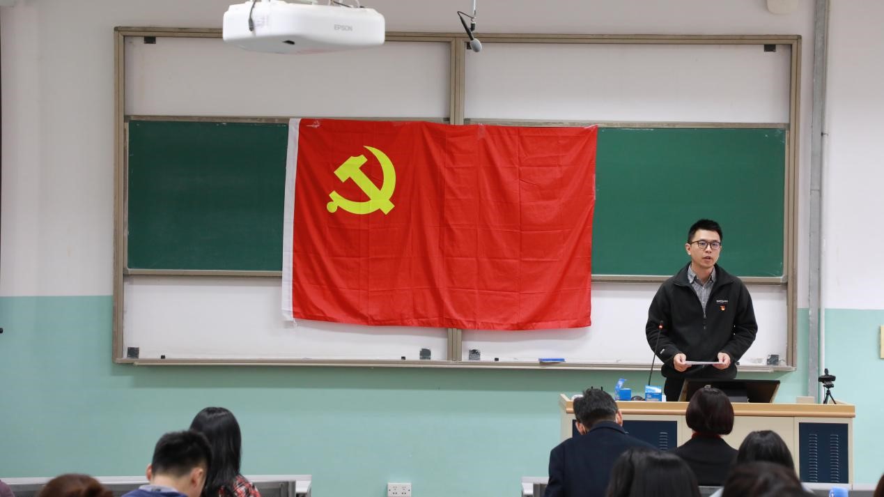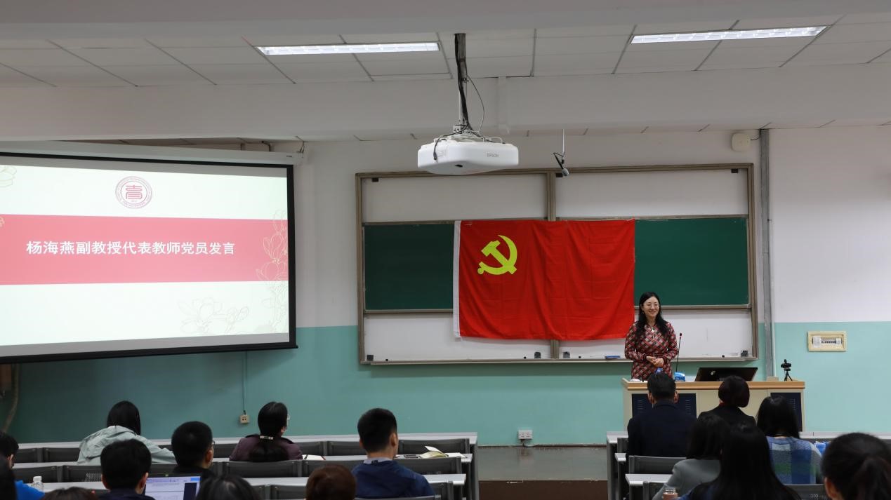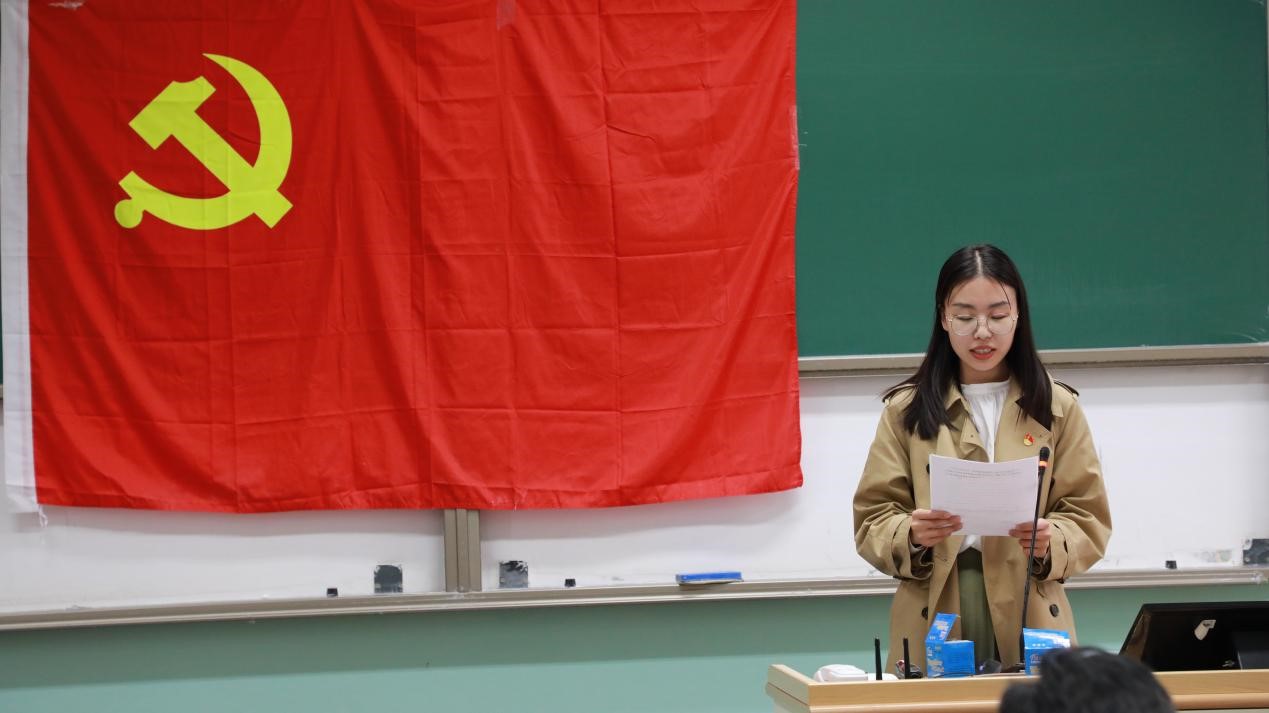 2020级硕士生党支部组织委员周延军代表学生党员进行表态发言。她认为,学生党员作为大学生中的先进群体,更应该通过这次党史学习教育,重温党的百年奋斗历史,自觉做共产主义远大理想和中国特色社会主义共同理想的坚定信仰者和忠实实践者,成为具有远见和深度的大国公民。学生党支部将紧跟部署,全面开展党史学习教育,将党史教育化作政治生活的重要部分,开展具有学生党支部特色的学习活动,将党史学习教育的实际效果落实在支部日常建设的实际行动中,做到学有所思、学有所悟、学有所得。