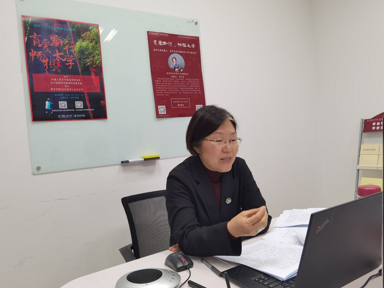 与贵州省黔西县人民政府框架性合作协议精神。项目设想来源于学院师生团队的调研发现,课程依托教师与学生党支部的力量,充分发挥教育学科的专业特色,通过为期2个月的在线课程向黔西县高中生分享生涯发展、大学学习成长经历及高校专业选择等话题,旨在解决欠发达地区高中生面临如何寻找自己的学习兴趣、选择适合的院校与专业、规划未来的人生发展以及缺少生涯发展指导的专业资源等问题。