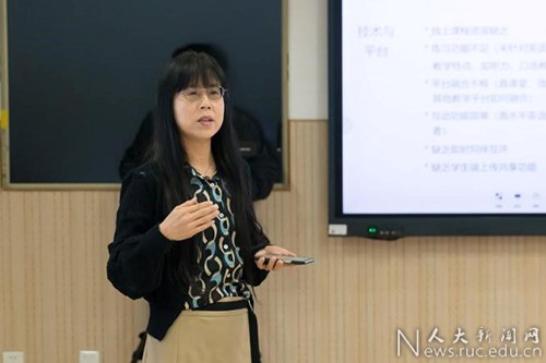 王红表示,大学英语智慧教学课堂实现了“生动、主动、互动”的教学效果,有效激发了学生的英语学习兴趣,提升了学生的探究式学习能力、思辨能力、合作沟通能力和英语演讲能力。