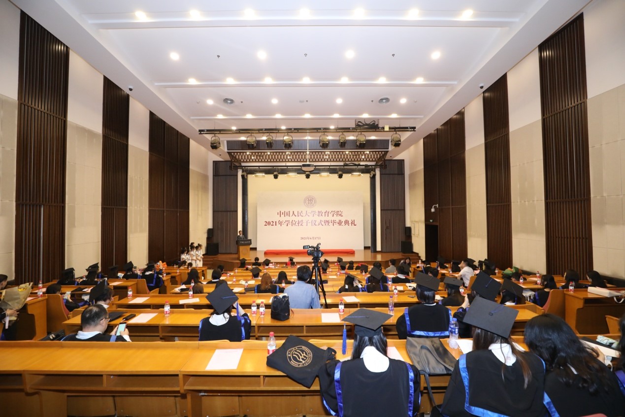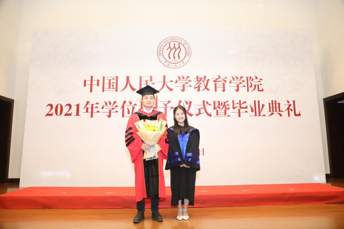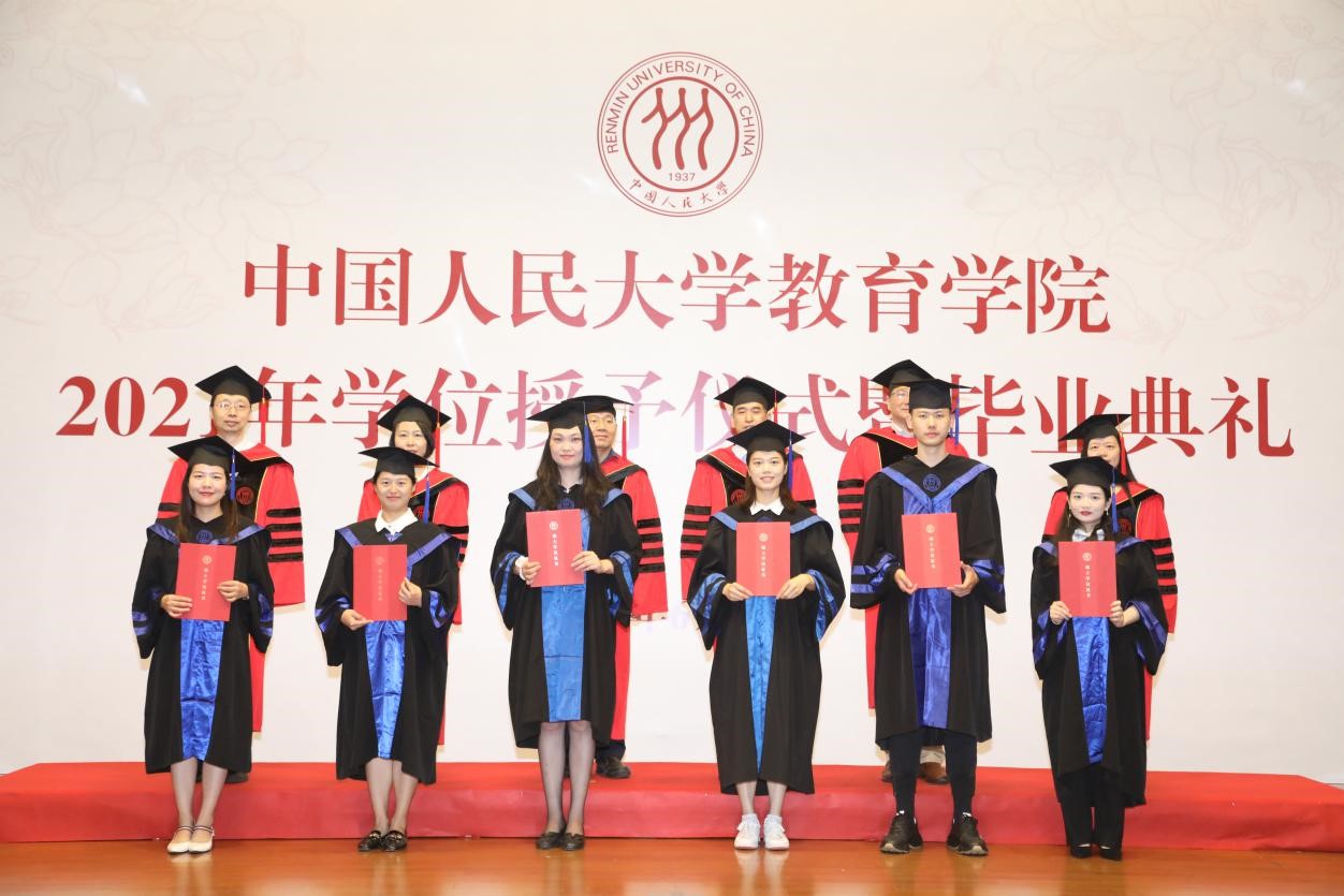 毕业生们的光荣与喜悦,并称同学们为“追光的人大教育人”。教育与我们每个人的成长经历都密切相关,都有对教育的切身体验与认识。教育发生在校园里,参加的每一场活动和比赛,都展现了教育学子的拼搏精神、友爱精神和学术精神。作为学院老师,希望帮助同学们通过教育学习与教育研究的方式更好地反思教育,通过有温度的教育研究为重要的教育现象与教育问题提出自己的见解,更希望同学们能在这两年的滋养中收获一个更加完善完满的自己。作为班主任,她表示期望看到学生是脚踏实地而又生动活泼,心中有志、眼里有光。最后,她与同学们一起回顾了美好的求学时光,并许下十年之约,期待同学们以修身为本,止于至善,成为一个闪闪发光的人大教育人。