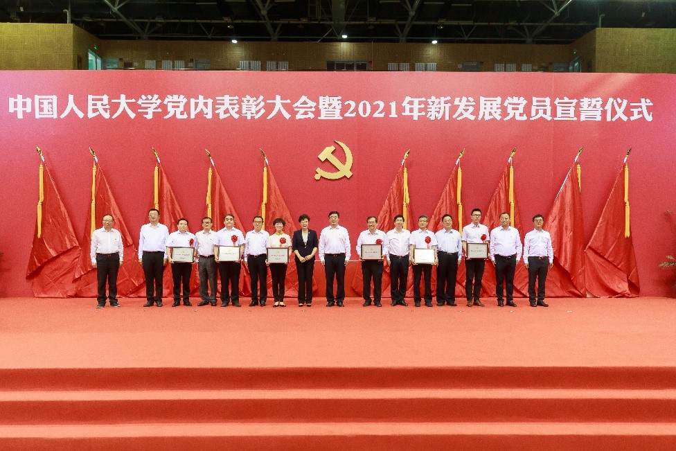 举行党内表彰大会暨2021年新发展党员宣誓仪式。全体在校校领导靳诺、刘伟、吴付来、郑水泉、刘元春、朱信凯、齐鹏飞、顾涛、王轶、胡百精出席会议。党委副书记、校长刘伟主持会议。