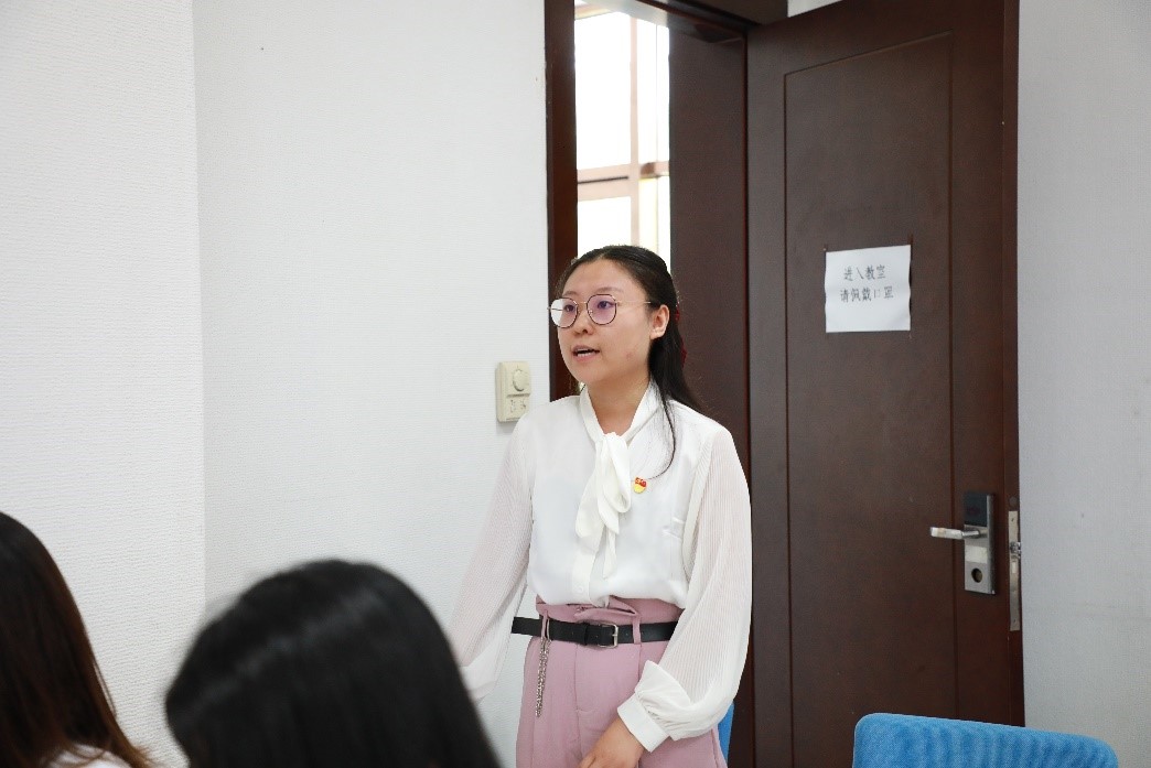 博士生党支部书记温静怡在发言中表示,习近平总书记的讲话让每一位党员再一次重温历史、展望未来。人民是历史创造者,是决定党和国家前途命运的根本基础。习近平总书记嘱咐我们每一位党员要增强忧患意识,始终要居安思危,更是对我们青年寄予了深切的期望。作为青年学生党员,一定要牢记习近平总书记的嘱托,不负使命和担当,不负青春。