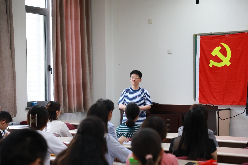 2020级硕士生党支部党员李清煜结合参演庆祝中国共产党成立100周年文艺演出《伟大征程》的感受,分享了自己的观看体会。她表示,作为一名共产党员、一个青年,深感肩上的时代责任之巨、使命担当之重,青年一代更应该有理想、有信念、有责任、有担当,为中华民族的伟大复兴事业奋斗到底。