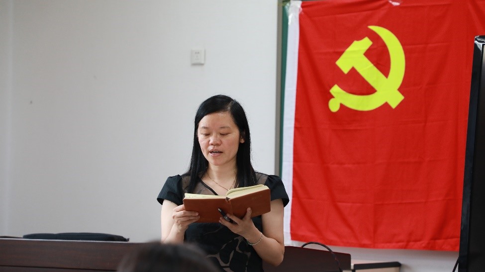 学院副院长胡莉芳分享了聆听习近平总书记讲话的体会。她表示,党的办学历程深刻改变了中华民族的发展方向和进程,深刻改变了人民和民族的前途和命运,深刻改变了世界发展趋势和格局,只有中国共产党才能找到民族前进的道路。作为一名教师党员,胡莉芳表示,要和年轻人一起把奋斗融入到党和人民的事业中,成为中华民族复兴的先锋力量。