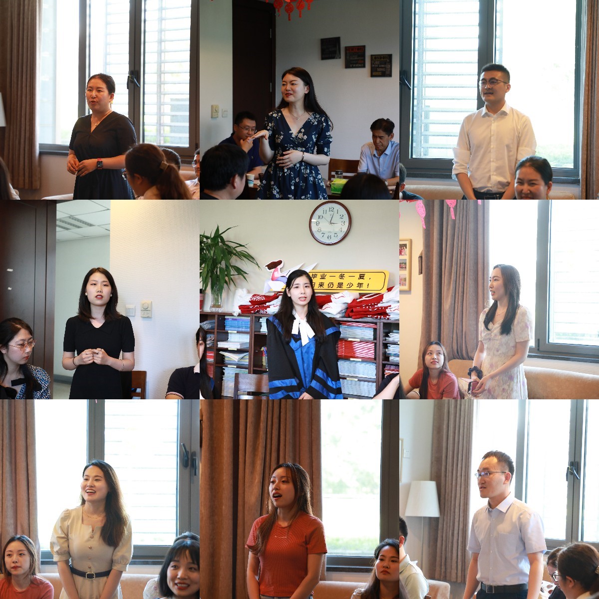 茶话会开始前,学院老师和2020届毕业生在国学馆门前广场合影留念。