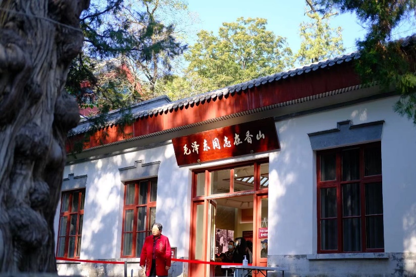 香山是党中央“进京赶考”的第一站,见证了老一辈无产阶级革命家领导中国革命取得胜利的革命史诗。大家从香山东门出发,首先前往毛泽东同志办公居住地——双清别墅;朱德、刘少奇、周恩来、任弼时同志办公居住地——来青轩等革命旧址进行参观学习。在这里,毛泽东同志指挥了著名的渡江战役,并筹划了新中国成立的准备工作,还写下了《论人民民主专政》等许多重要党的历史文献,以及《人民解放军占领南京》等不朽诗篇。在参观过程中,各位博士生同学回顾了中国共产党“进京赶考”的革命历程,重温了党中央在艰苦奋斗中筹建新中国的历史,激励自己真正做到“初心不变,勇担使命”,成为新时代中砥砺奋进的奋斗者与奉献者。