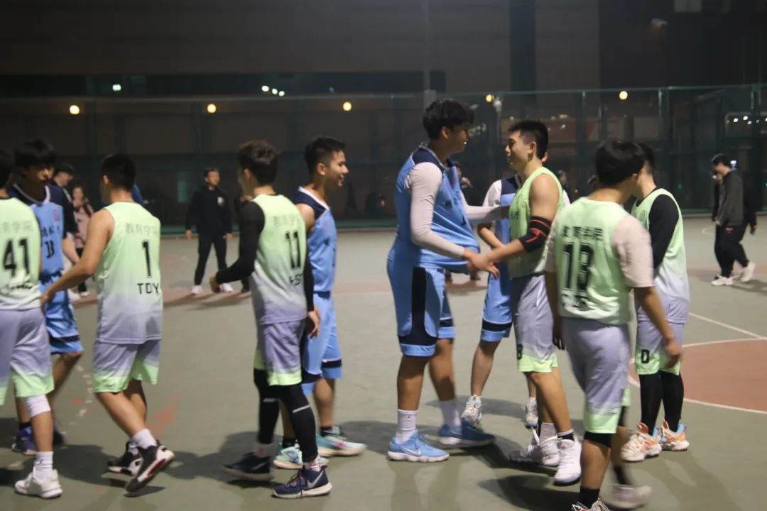 比赛结束后,队员们分别向对手、裁判和观众致意。最后,在场的所有教院成员一同合影,纪念这场在寒冷夜晚中热血沸腾的胜利。