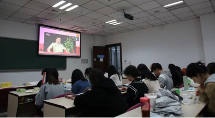 学院师生们首先齐唱团歌,张曹梦骆对《中国人民解放军军歌》的创作背景与发展历程进行了详细介绍,并带领同学们集体观看了视频《军歌背后的故事》。以《中国人民解放军军歌》为代表的军歌体现了中国人民解放军的性质、任务、革命精神和战斗作风,人民军队在党的坚强领导下,无论在烽火硝烟的战争岁月,还是奋进建设的和平年代,都作出了巨大的贡献,此时此刻回顾军歌的创作历程和精神内涵具有特别的意义。
