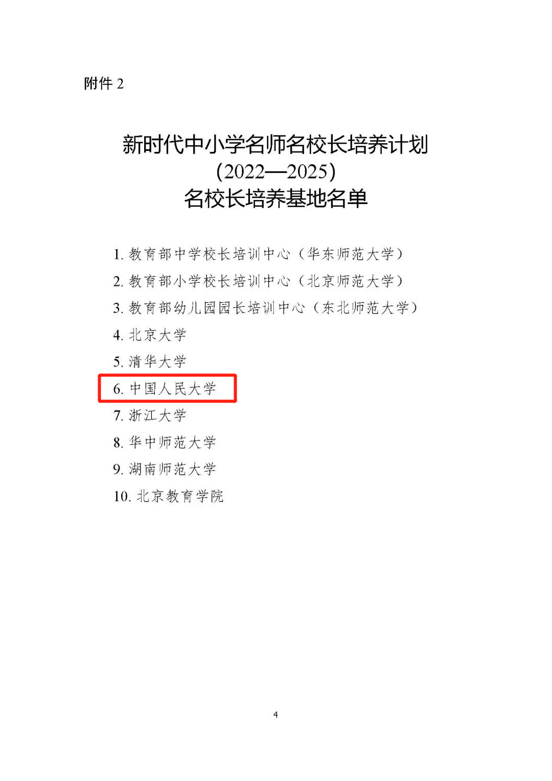教育部办公厅于近期公布“新时代中小学名师名校长培养计划(2022—2025)培养基地及培养对象名单”,我校入选新时代中小学名师名校长培养计划(2022—2025)名校长培养基地名单。