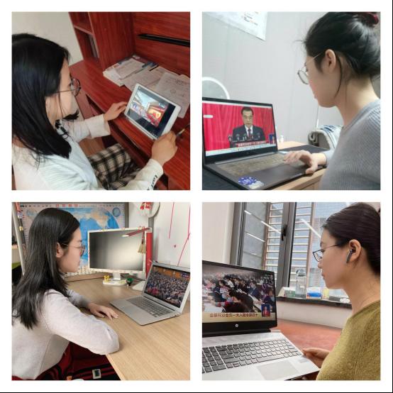 组织学生代表在国学馆304会议室集中收看开幕会,其他学生通过网络直播的形式自行收听收看。开幕会后,学院学生认真学习政府工作报告,并积极分享心得体会。