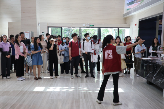 项目成员认真听取深圳大学校史馆志愿者的讲解