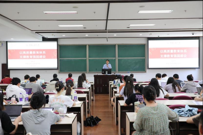 副教授詹宏毅主持。刘复兴从五个方面对高质量教育体系建设展开阐释,重点关注中国式现代化理论指导、全民终身教育体系、义务教育、人才培养体系、教育数字化转型对建成高质量教育体系的意义。他指出,当前我国正处于教育发展的重要阶段,我国能否成功跨越此阶段,取决于能否建成教育强国,而建成高质量教育体系将为教育强国建设添砖加瓦。