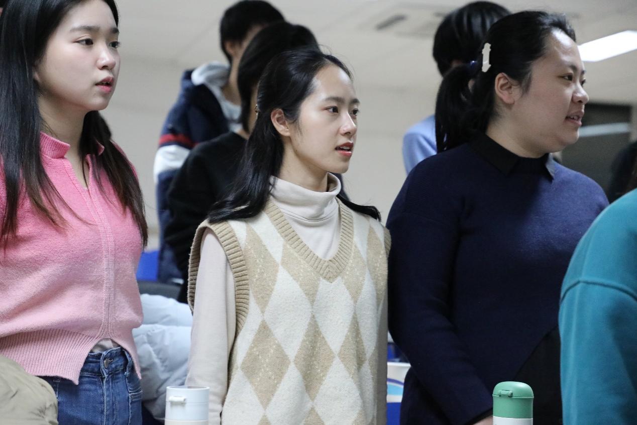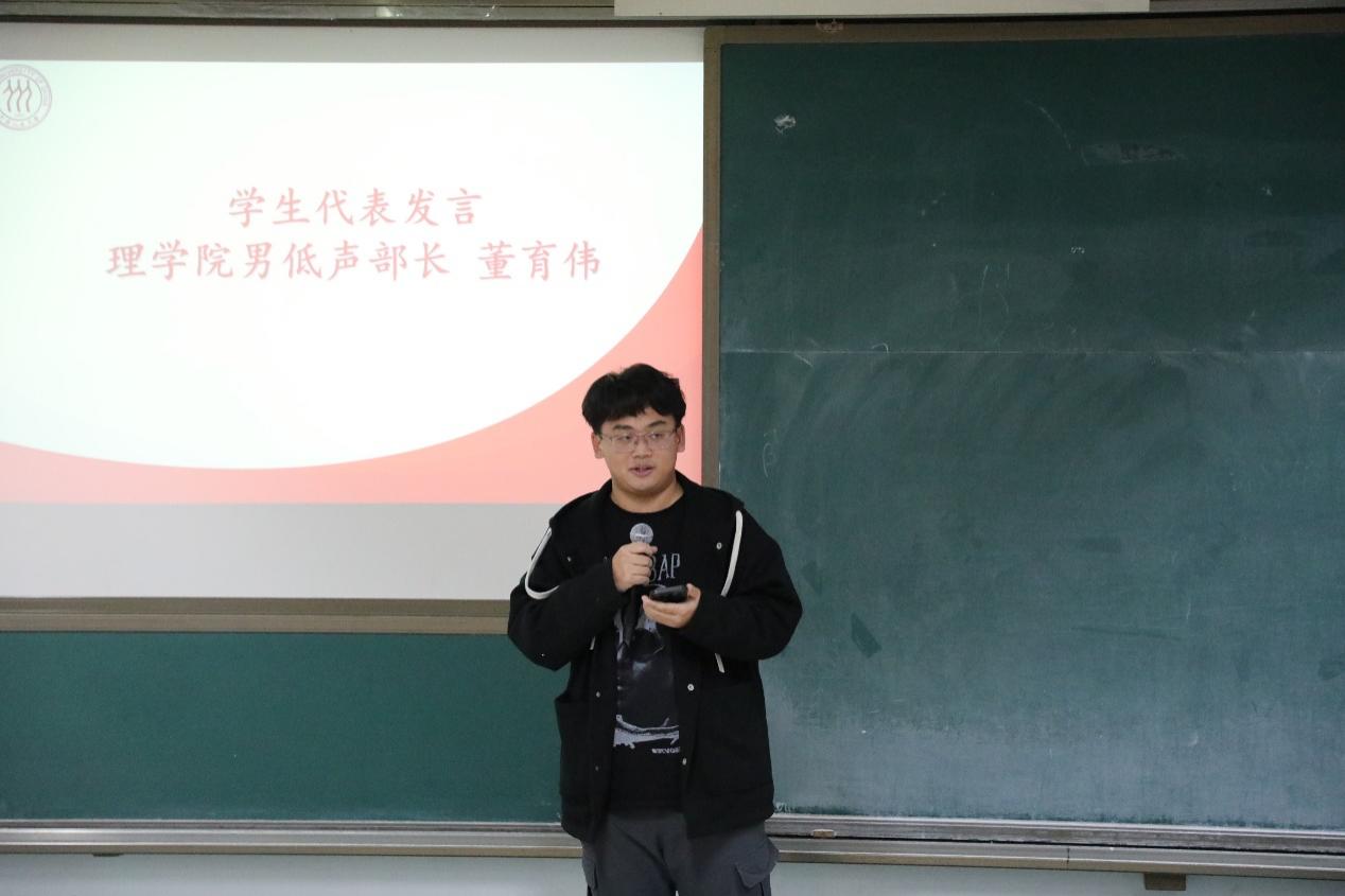 不少同学也有感而发,学生代表、男低音声部长董育伟同学和女高音声部长张洋溢同学分别发言,回忆了这段时间来的收获与感悟,对辛苦排练的同学和老师、认真负责的后勤人员、协调组织的学生干部以及大力支持的学院老师们表示了真诚的谢意,坚信从上到下团结一心、众志成城的“理育心声”合唱队必将取得令人瞩目的成绩。