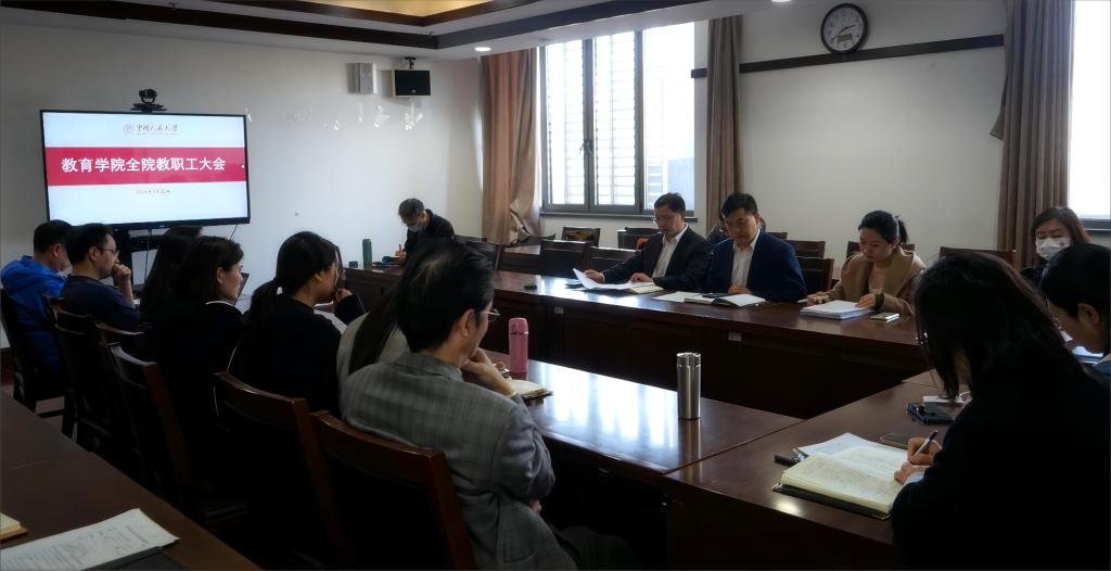 召开2023-2024学年春季学期全院教职工大会。院长周光礼、副院长胡莉芳,党委副书记、纪委书记崔盛,党委副书记何劭玥出席会议,学院教职工参加会议。党委书记刘甡主持会议。