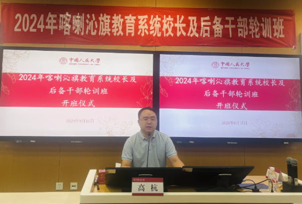 高杭在致辞中向喀喇沁旗方面的各位领导、老师表示热烈欢迎。他指出,学院党委高度重视与喀喇沁旗方面的合作,第一时间深入研究了培训需求,进行全面、丰富、多维的课程设置。首先课程设置突出政治站位,深入学习党的二十届三中全会精神,和习近平总书记关于全面深化改革的一系列新思想、新观点、新论断,把握教育综合改革的系统性、整体性、协同性;其次坚持问题导向,针对学校建设和管理的重点领域,安排专题课程;最后注重一线实践经验的学习和参观交流。本次培训班是双方开展合作的第一次探索和实践,未来的合作大有可为。希望以本次培训为契机,进一步拓宽合作领域。