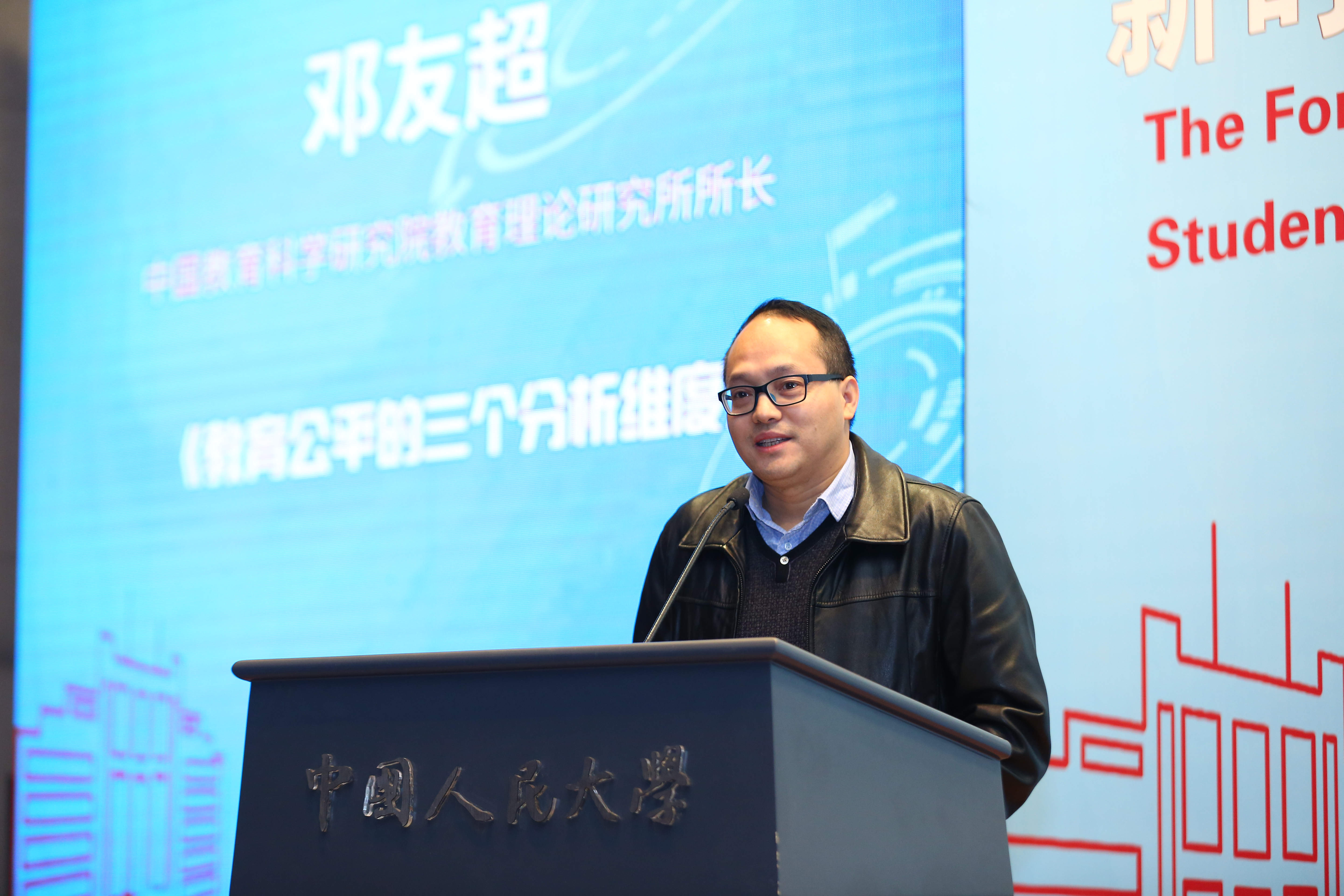 中国教育科学研究院教育理论研究所所长邓友超研究员以“教育公平的三个分析维度”为题,从城乡、区域、校际与群体差距论、机会、过程与结果公平论、权利、机会与规则公平论等三个分析维度系统阐明了教育公平的概念、内涵与价值,强调教育公平作为政策话语中的核心概念,需要进一步精准把握和诠释。