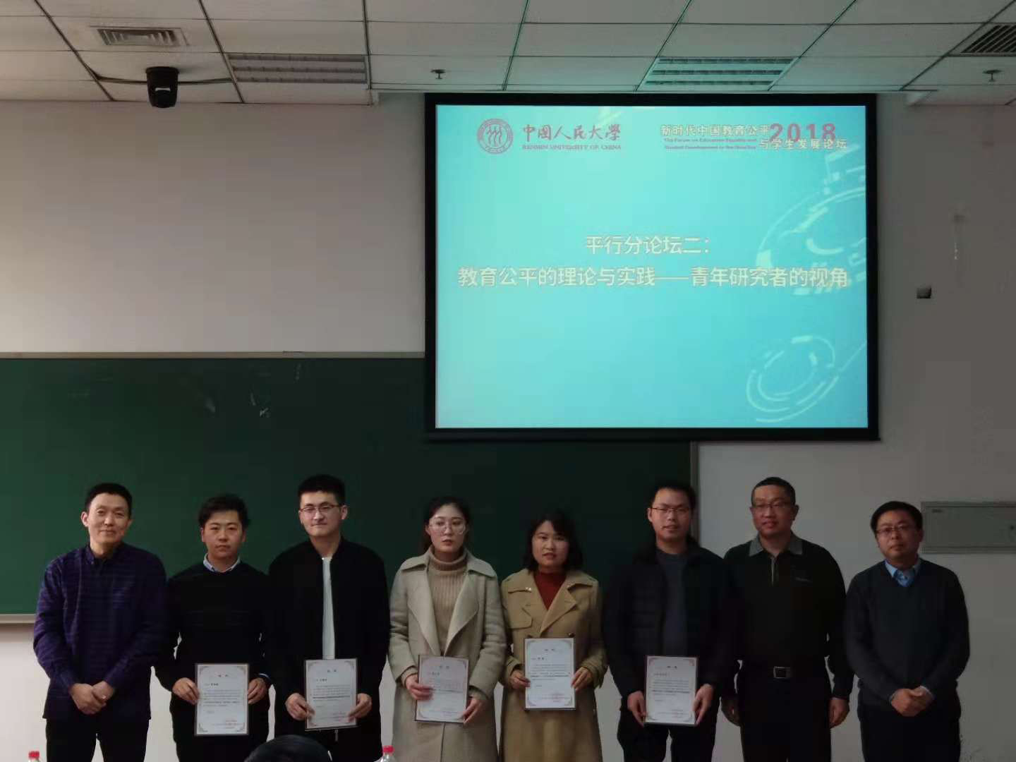 副院长薄存旭教授,上海市教育科学研究院研究员翁伟斌,《中国高教研究》编辑部副研究员王者鹤,青岛大学师范学院教授吕慈仙,《中国教育学刊》副编审吕允英,对外经济贸易大学教育与开放经济研究中心助理研究员薛新龙进行详细而精彩的点评,并为学生颁发优秀论文证书。