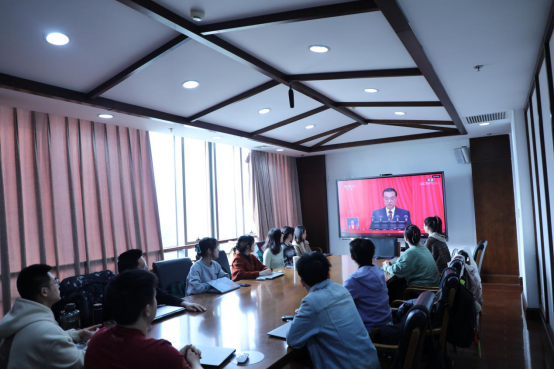 组织学生代表在国学馆304会议室集中收看开幕会,其他学生通过网络直播的形式自行收听收看。开幕会后,学院学生认真学习政府工作报告,并积极分享心得体会。